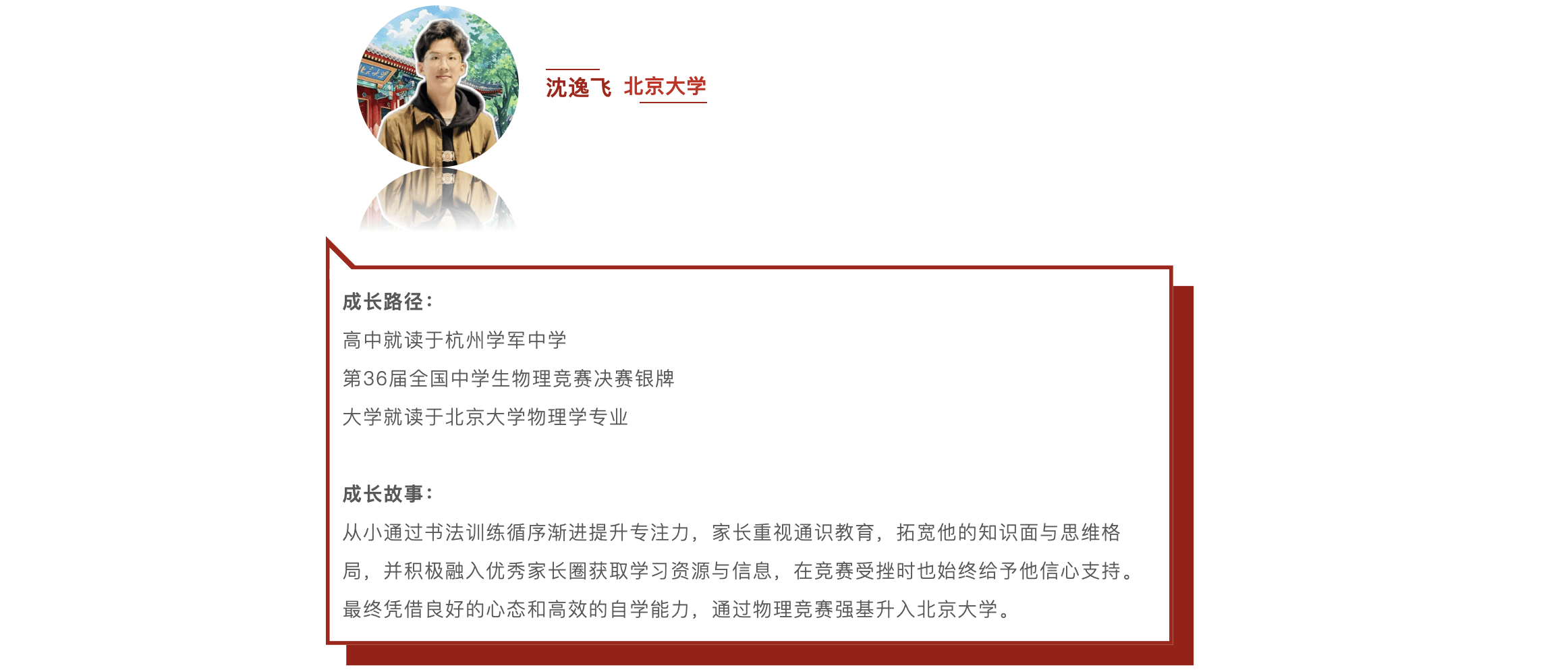 “还有一件事我觉得也是比较重要的,就是应该重视孩子的通识教育。通识教育就是有关文学、历史、哲学、地理方面的各种各样的百科一样的知识,当时我妈妈还专门给我报了一个补习班,学习城市的下水道构造、厕所的发展与改良以及一些历史故事。虽然这些东西考试不会考到,但正是这种通识教育使我在初高中阶段觉得自己不是一个单纯的书呆子和做题家,它让我了解更多的世界,成为了一个更丰富的人,对于我的思维以及完整人格的塑造都是非常有利的。”