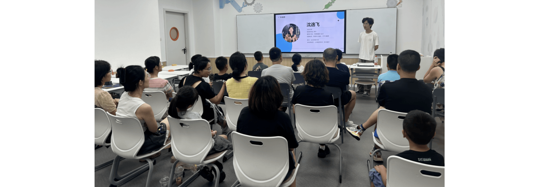 逸飞学长在讲座上跟小学员合影