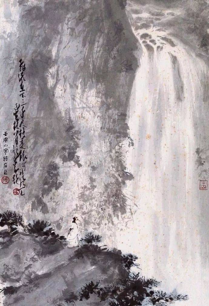 傅抱石所作人物又善于将古典诗词的意境美,与绘画艺术的形象美交为一体,意态潇洒,神情秀逸,风格高古。