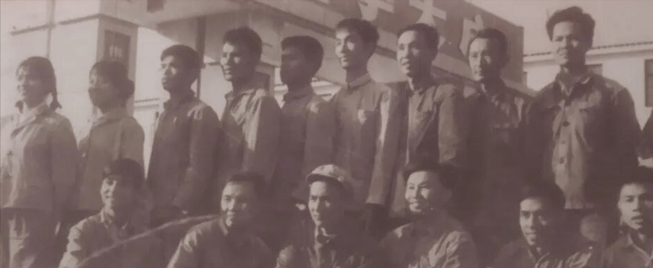 1972年,梁世雄(后排右四)带领广州美术学院国画班学生在茂名石化采风