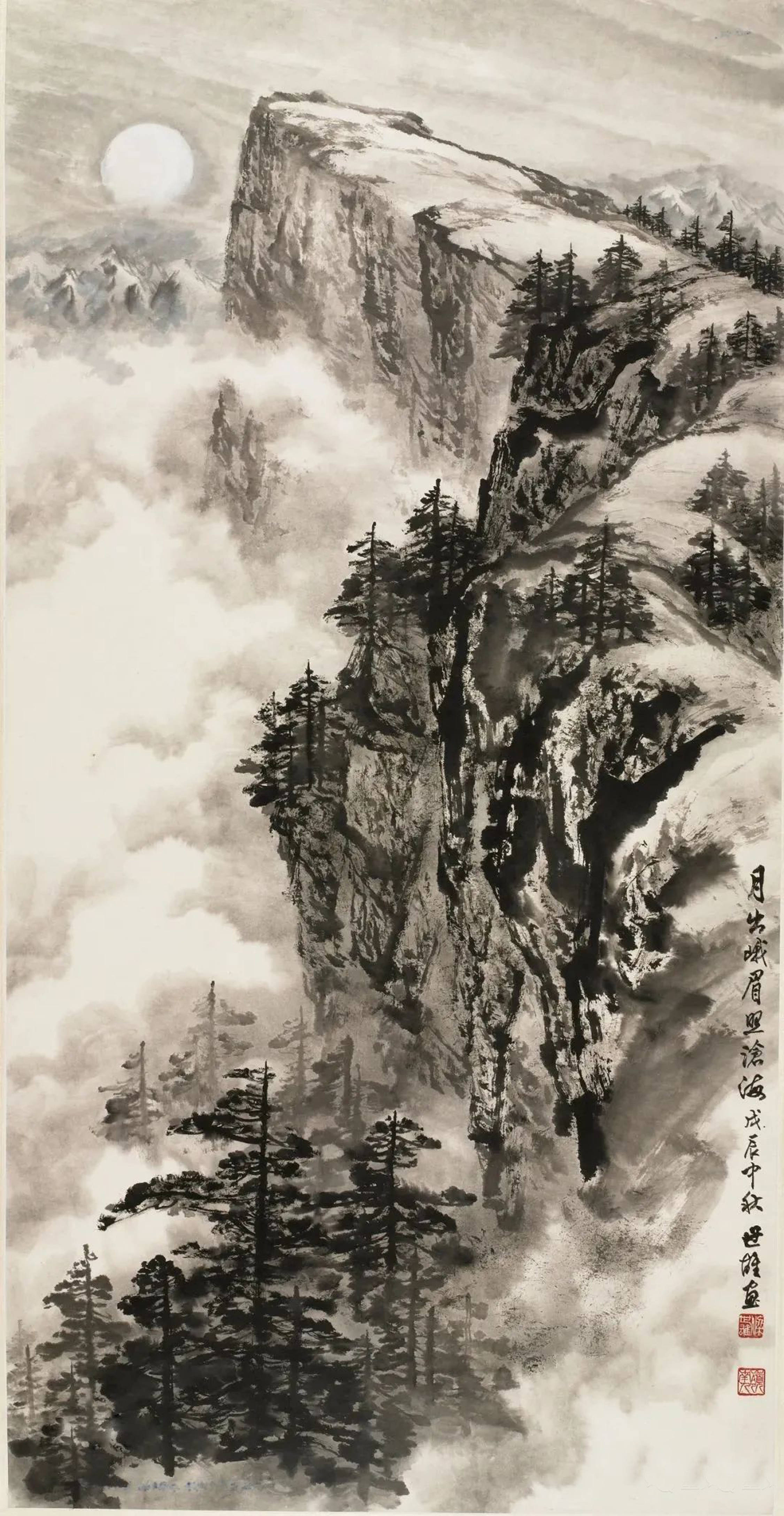 从笔墨语言的演变中,更能窥见梁世雄艺术追求的进阶与成熟。艺术生涯初期,他的作品多表现云雾迷蒙之景,笔墨细腻灵动,画面充满生命朝气,尽显对自然生机的敏锐捕捉;随着岁月沉淀与人艺俱老,他的笔墨逐渐趋于粗放,笔法老辣苍劲,在遒劲的线条与厚重的墨色中,既可见北方山水画的雄浑气势,又不失岭南画派的清新灵动。