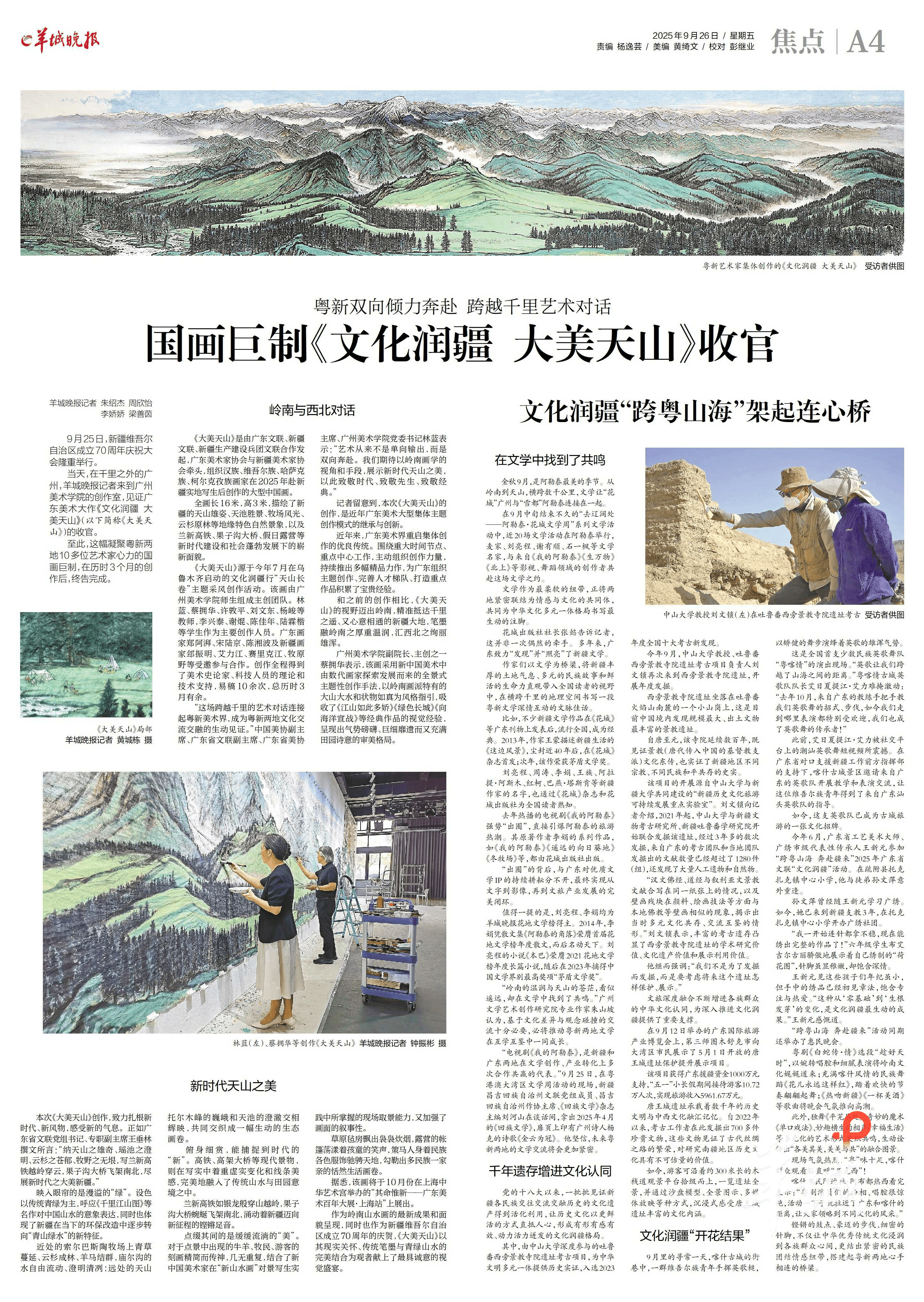 当天,在千里之外的广州,羊城晚报记者来到广州美术学院的创作室,见证广东美术大作《大美天山》的收官。