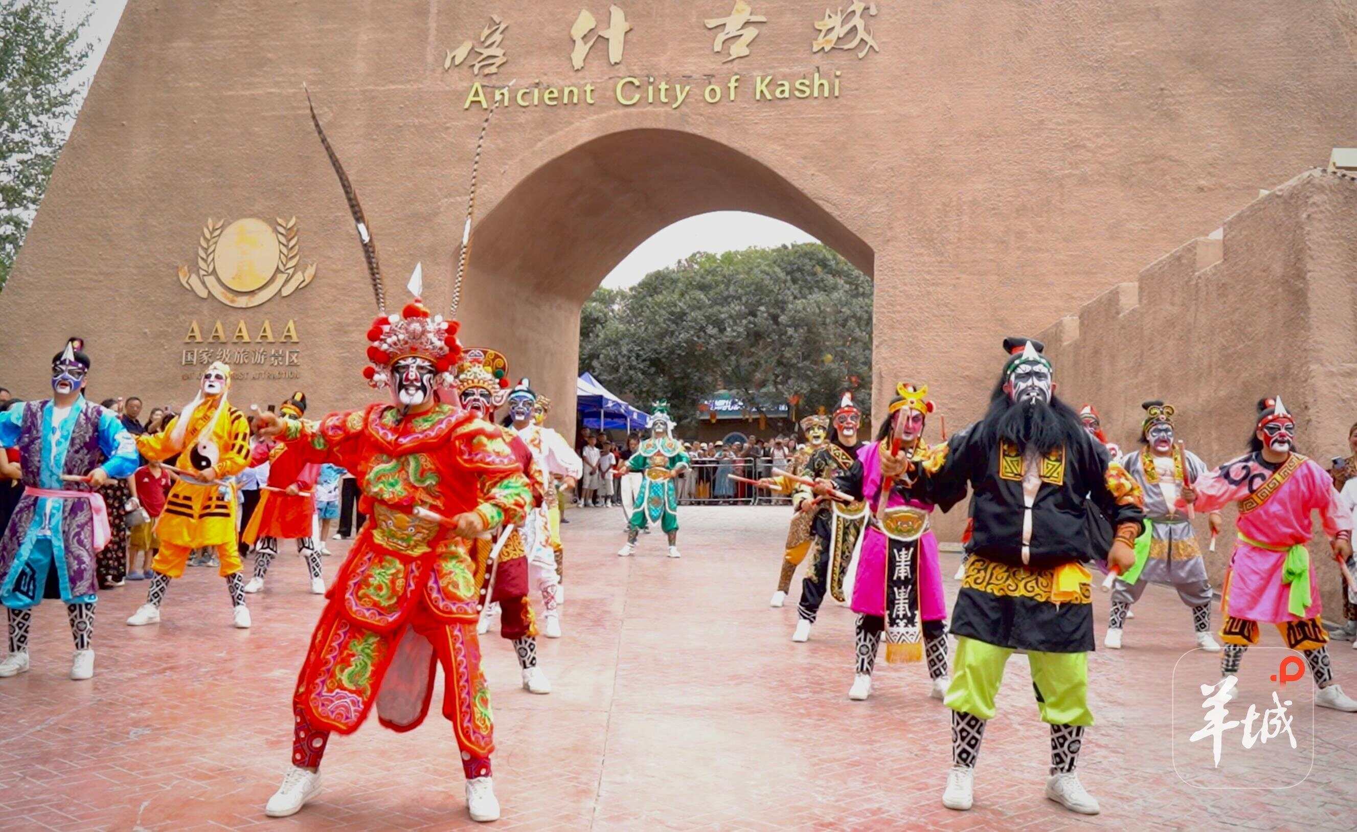 这是全国首支少数民族英歌舞队“粤喀情”的演出现场。“英歌让我们跨越了山海之间的距离。”粤喀情古城英歌队队长艾日夏提江·艾力难掩激动:“去年10月,来自广东的教练手把手教我们英歌舞的招式、步伐,如今我们走到哪里表演都特别受欢迎,我们也成了英歌舞的传承者!”