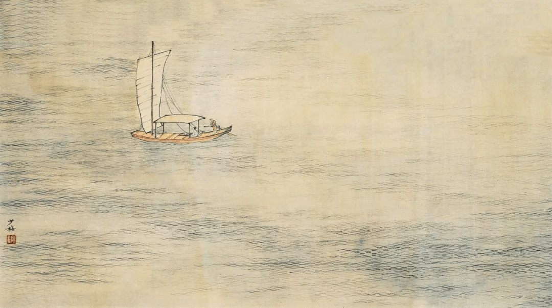 陈少梅《一帆风顺》 26×54厘米 纸本设色