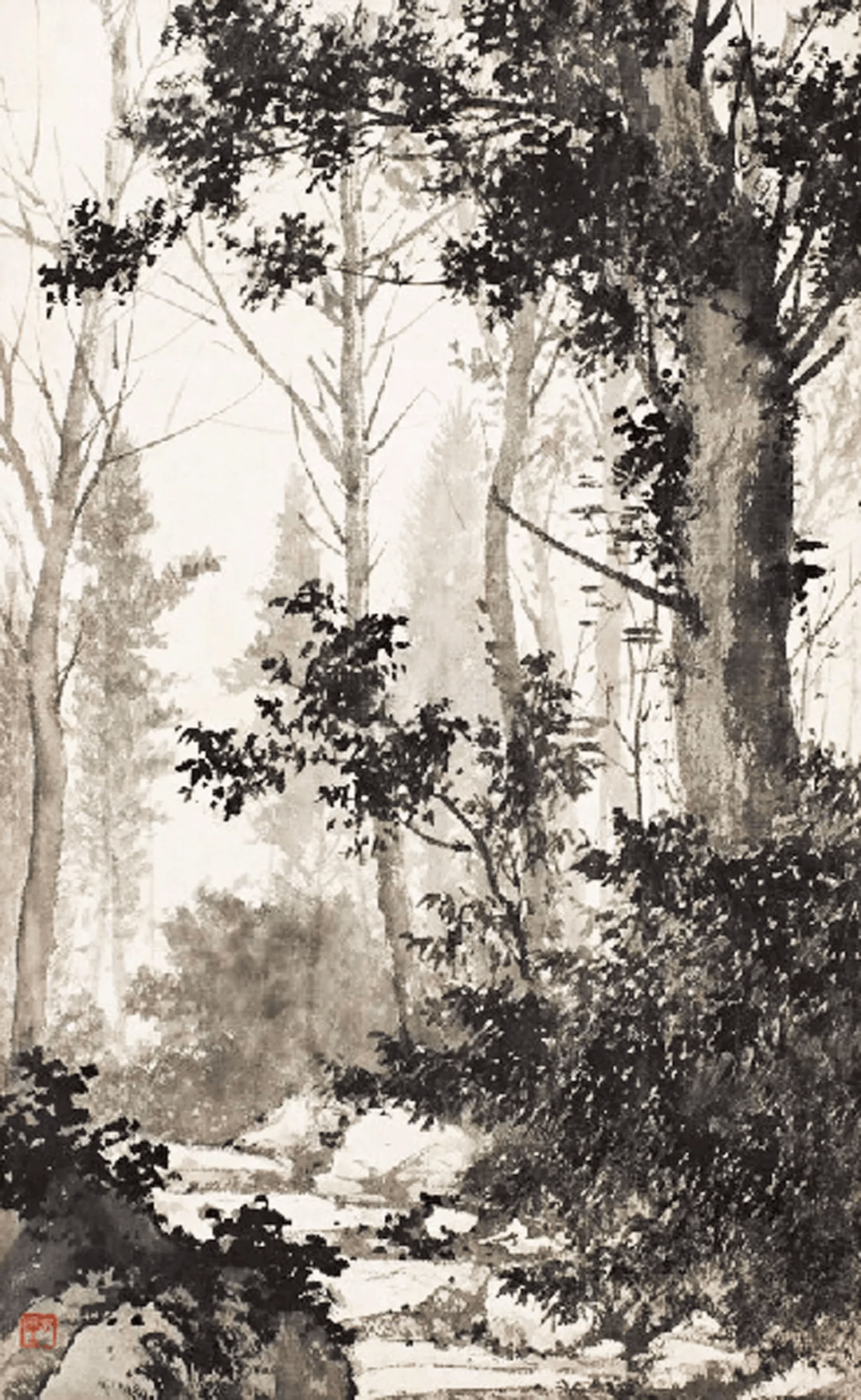 陈少梅《晨林石径》