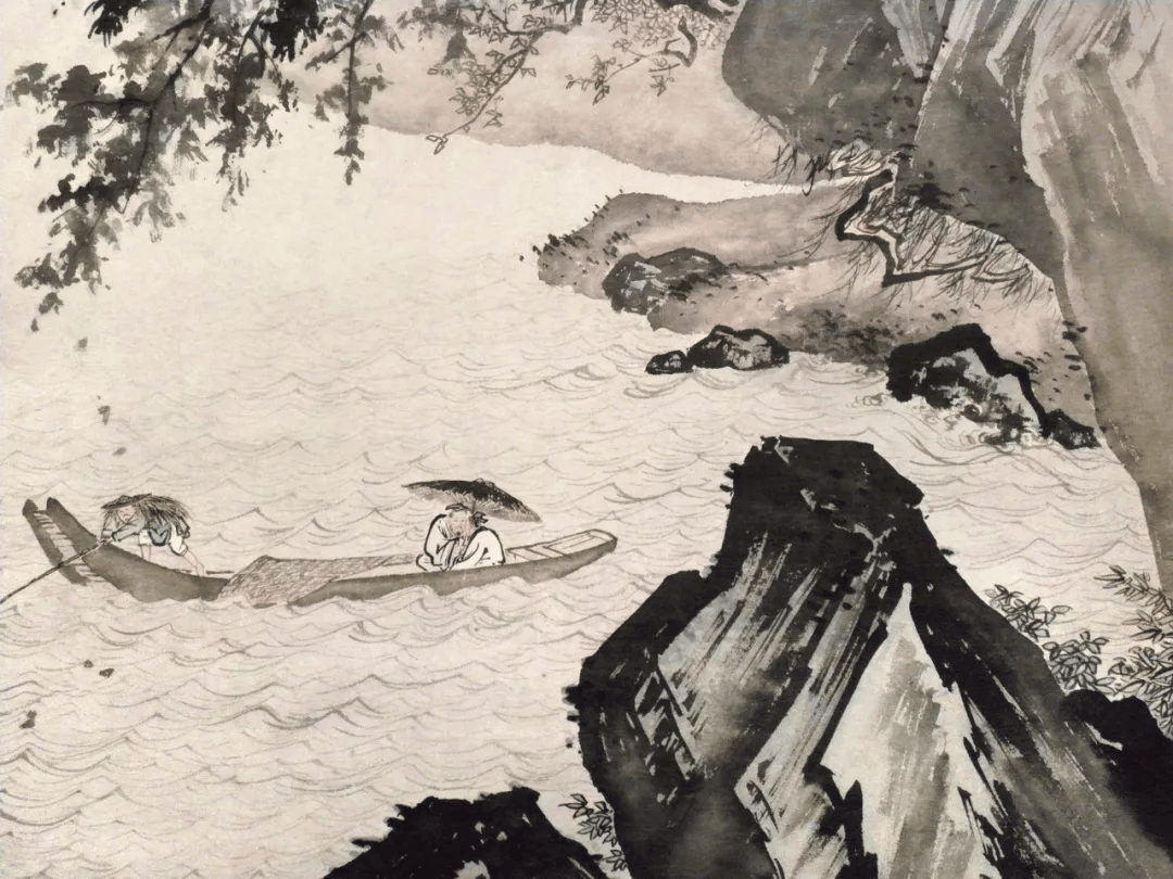 这一时期陈少梅的人物画清秀与豪放并存,像《采菱图》《芦汀渔女》这类属纤秀风格,往往在山水和人物上笼罩着一股淡淡的哀愁,另外一种较为粗放的人物画,如《东方朔》《达摩》《风雨归舟》这类作品用笔相对简约,有着明代张路、吴伟的遗风。