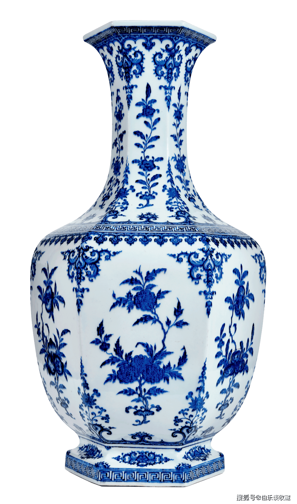 清乾隆 贡御青花折枝花果巴洛克式六方大尊