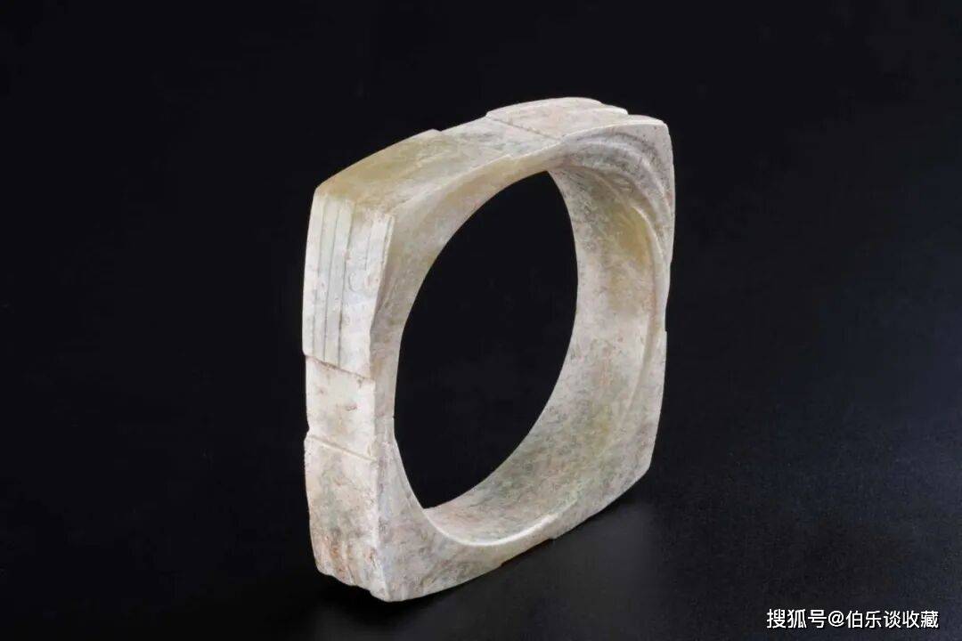 此属良渚文化复合型玉器,以青黄玉琢制,玉质凝润透黄,宝光内蕴,古意苍然。整体造型融合玉琮与手镯形制,外方内圆,孔阔壁匀,器身较常规玉琮略矮,兼具礼器之仪与饰器之美。