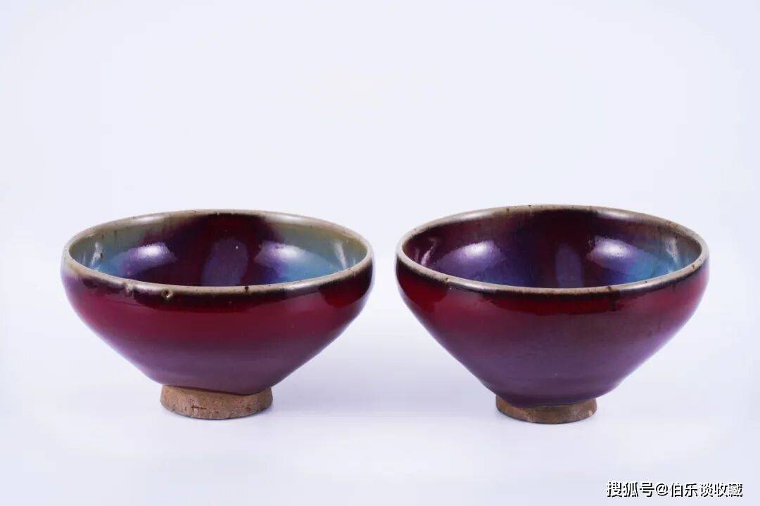 此拍品端正规矩,典雅有度。碗内外施玫瑰色和天蓝两种釉色,紫色可谓沁人肺腑,蓝色艳丽醉人。整体釉层光亮,细腻莹润,实属上品,尤其是碗外壁甚美,内壁斑纹发色同样耀眼,如此外璧全红者在当时烧造难度甚高,可谓万里挑一,故流传于后世者至为稀少。