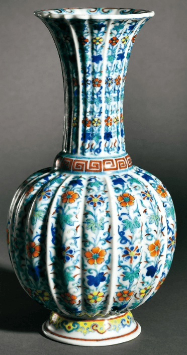 清雍正 斗彩加粉彩花卉菊瓣瓶