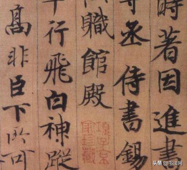 此作上溯颜真卿、柳公权的楷书规范,兼收李邕行书的雄强笔意,笔画横细竖粗,明显可见柳体“骨力洞达”的影子。横画多以侧锋切入,收笔重按作顿,锋芒毕露,极少藏锋,横画与竖画的粗细对比显著,捺画拉长,为后世黄庭坚“长枪大戟”的笔法创新提供了启示;