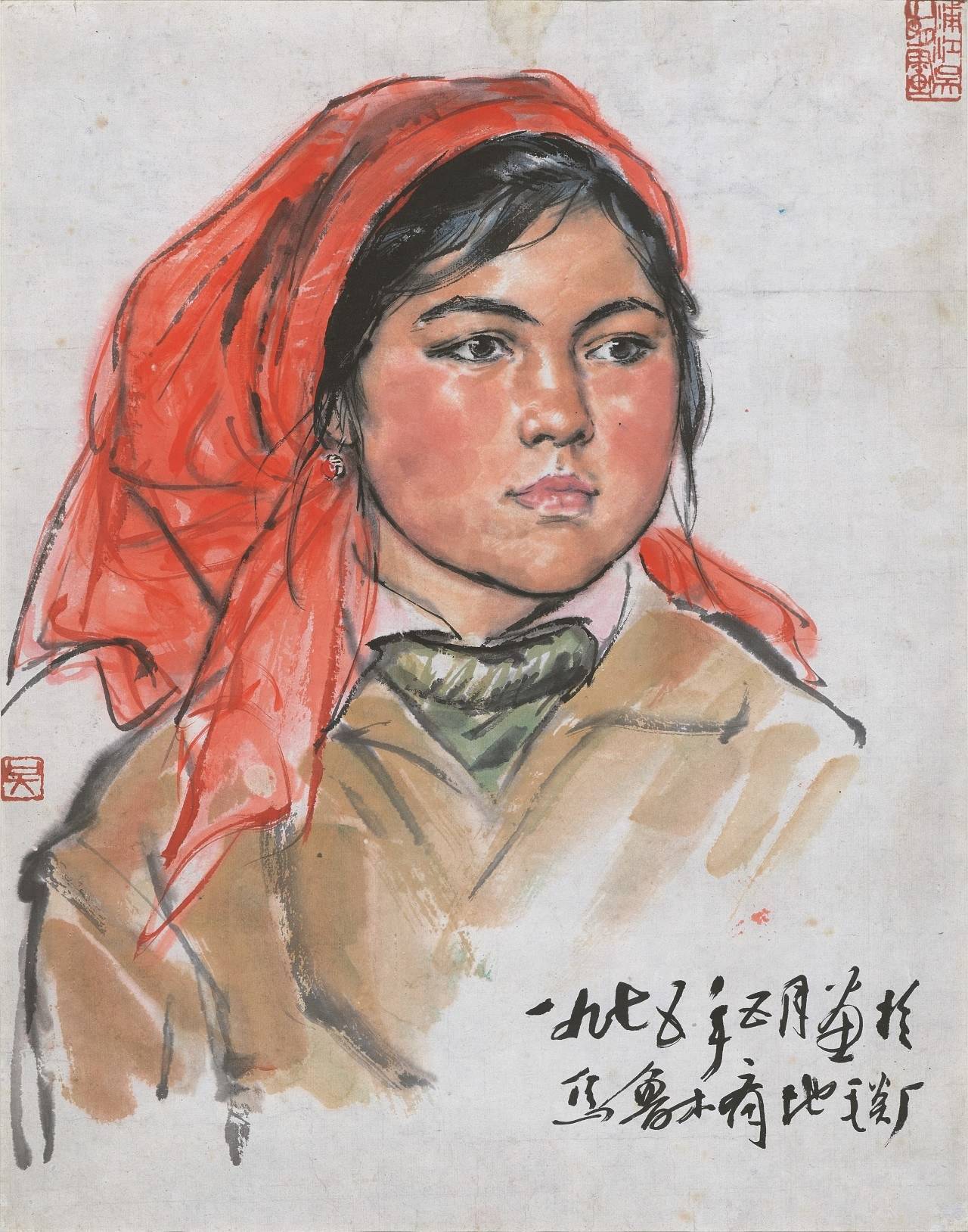 吴山明 新疆姑娘(乌鲁木齐地毯厂)43×34cm 1975年