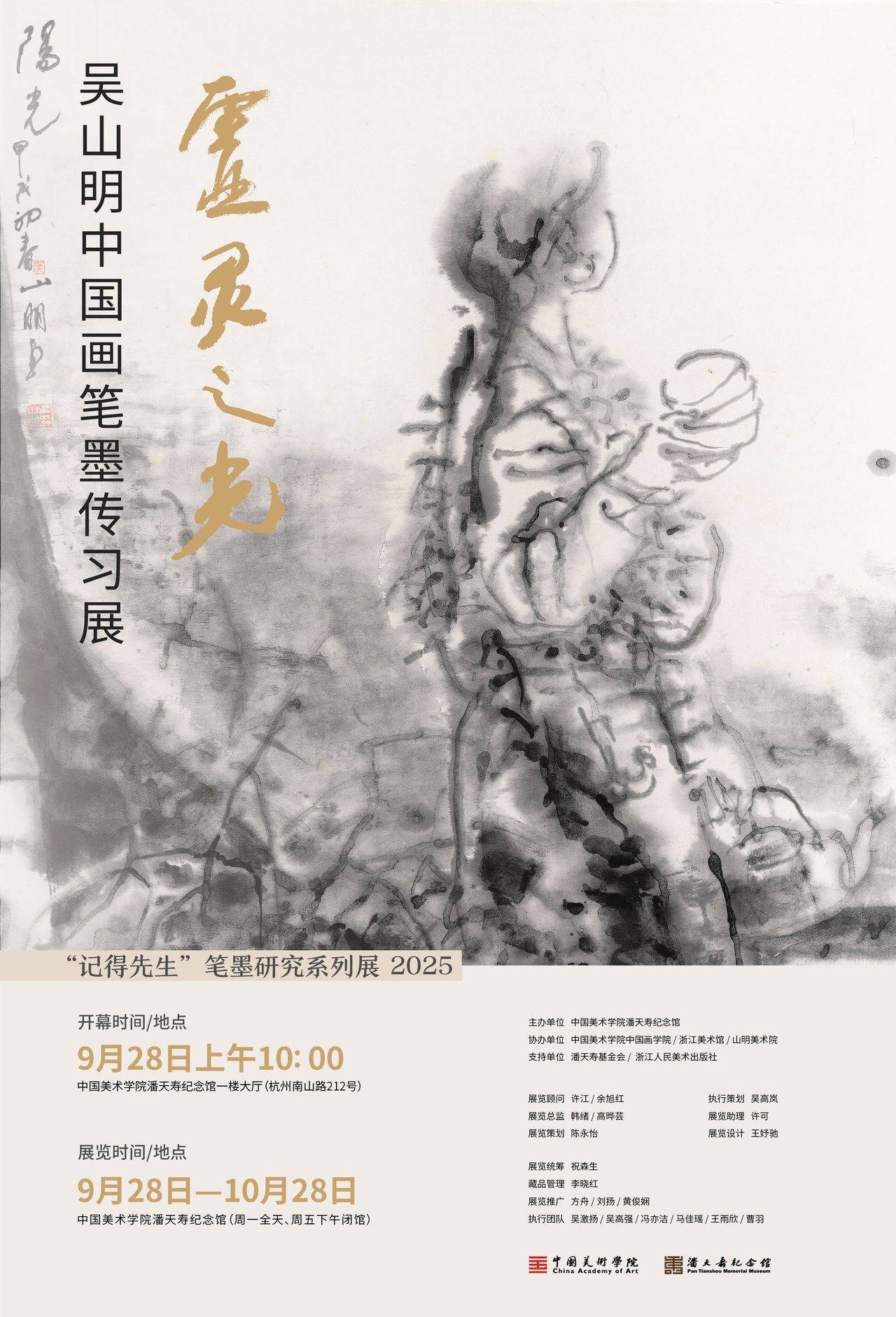 作为浙派人物画第二代领军人物之一,吴山明先生(1940—2021)以其虚淡空明的宿墨人物饮誉当代中国画坛。2025年潘天寿纪念馆“记得先生”笔墨传习系列展“虚灵之光——吴山明中国画笔墨传习展”侧重于剖析吴山明的笔墨探索历程,关注他以浙派人物画为基础,经过苦苦求索,找寻到适合自身的个人风格,进而拓展现代人物画的笔墨语言范式和审美范畴这一过程中的卓绝努力。