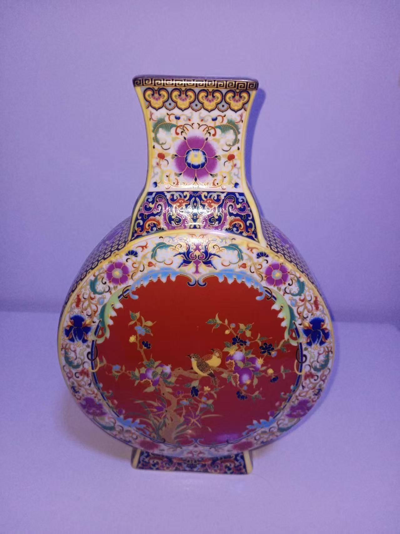 在中国古代陶瓷艺术的璀璨星空中,清代珐琅彩瓷无疑是最为耀眼夺目的明珠之一。而其中,以“雍正年制”为款的珐琅彩瓷器,更是以其至极的清雅、精湛的画艺与皇家的审美趣味,被后世誉为一代绝唱。“雍正年制珐琅彩描金花鸟纹扁瓶”便是这一时期的典范之作,它集当时最顶尖的工艺、最纯正的宫廷艺术风格与最深厚的文化寓意于一身,不仅是陶瓷工艺的巅峰体现,更是十八世纪东方美学精神的完美凝结。