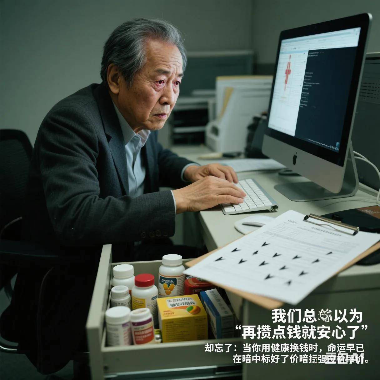 见过太多六十岁还在加班的人,抽屉里塞满了保健品,体检单上的箭头比工作计划还多。我们总以为“再攒点钱就安心了”,却忘了:当你用健康换钱时,命运早已在暗中标好了价码。