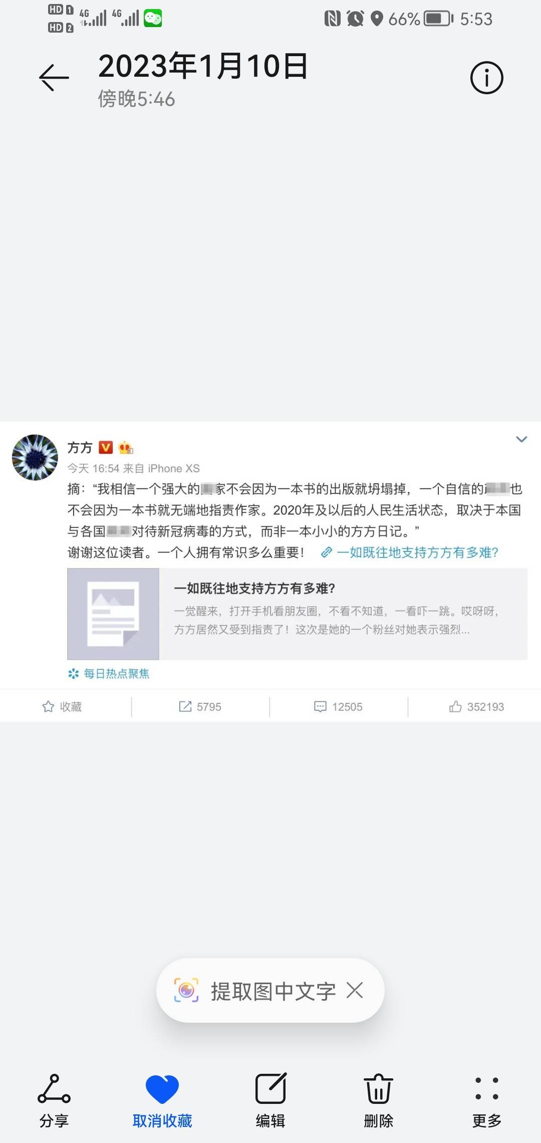 她的《武汉封城记》一度引起大量关注,很多焦虑的网友每天守在她的社交平台上,等待更新。然而,方方在日记中不仅夹杂了大量未经证实的内容,还出现了严重失实的描述。例如,她将一位援鄂的广西医护人员的短暂昏迷,写成了“去世”,制造了极大的恐慌。除此之外,她还散播了诸如“殡仪馆里堆满无人认领的手机”“武汉封城像蹲监狱”等不实信息,充斥着“死亡”“失望”等负面字眼。她的言论不但没有起到安抚人心的作用,反而加剧了恐慌,成为了谣言的传播者。