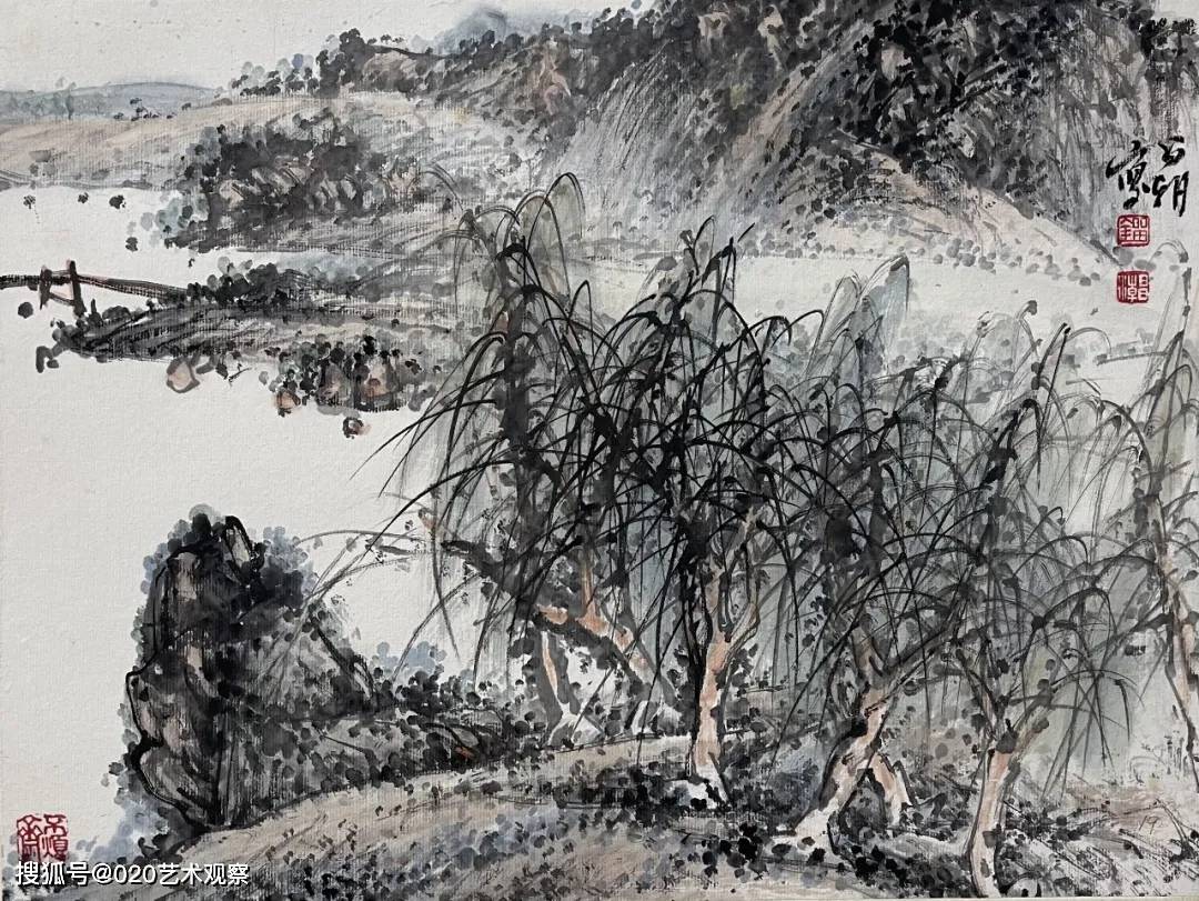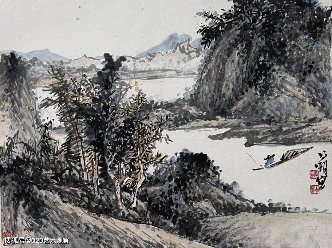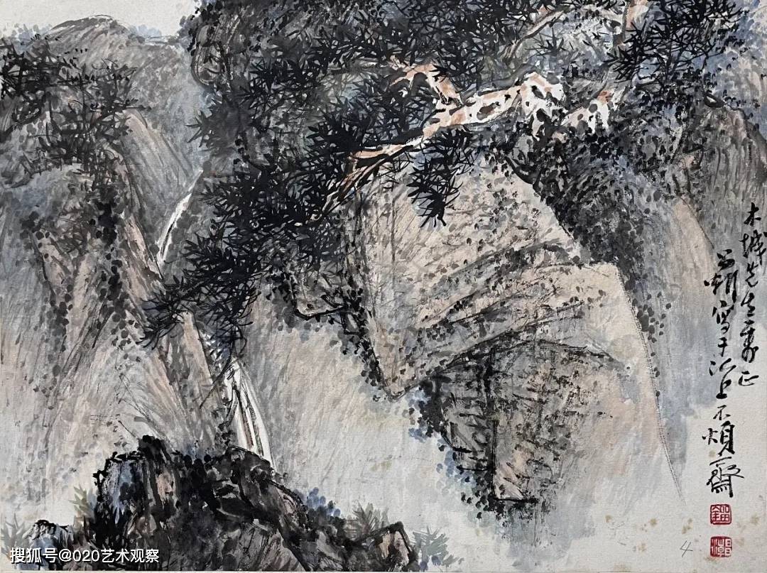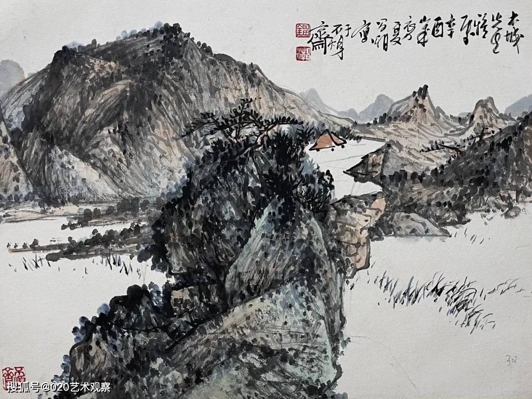 在刘昌潮的作品中,山川草木并非单纯的景物再现,而是心灵与天地的对话。他用笔沉雄稳健,墨色层次分明,皴擦点染间尽显山石的肌理与气韵;构图开合有度,或高远,或平远,总能引人入胜,让观者仿佛步入画中,听山泉叮婆娑。刘昌潮的艺术,不仅在于对笔墨传统更在于他对时代气息的敏锐捕捉。他在继承“四王”“石田”等先贤笔墨精髓的已添加到剪贴板现实山水的真切感受,使作品既具古典的雅韵,又不失鲜活的生命力。正如诸闻韵所评:“用笔遒劲,食古力深”,他的画既有深厚的传统功力,又有鲜明的个人风格。