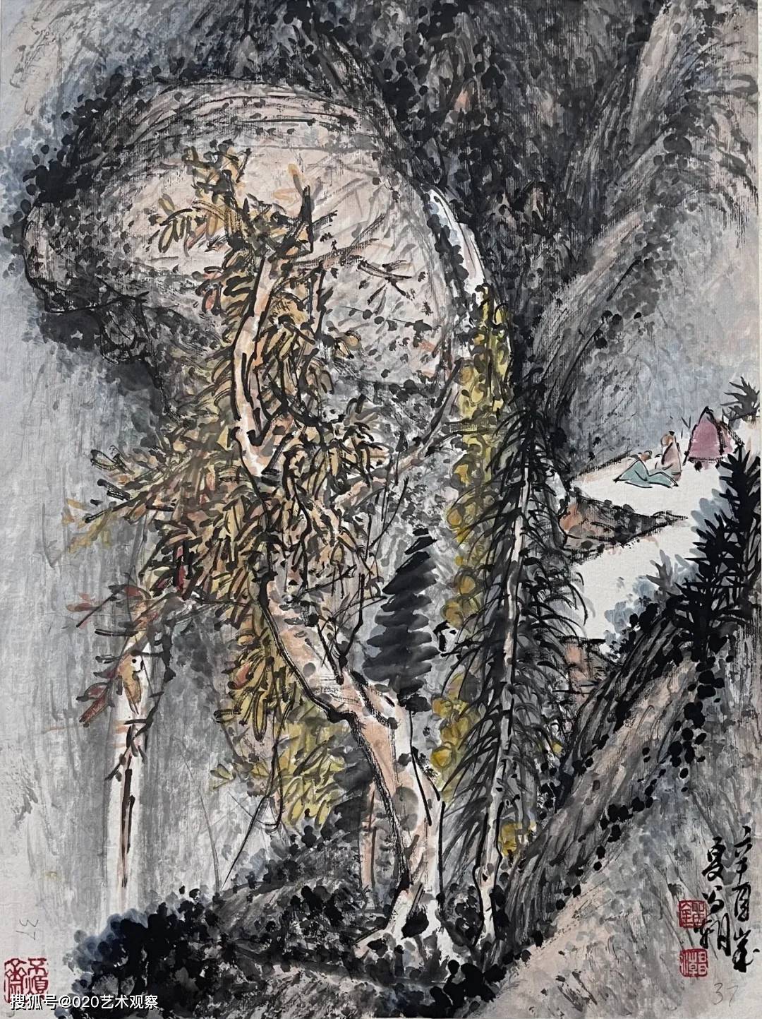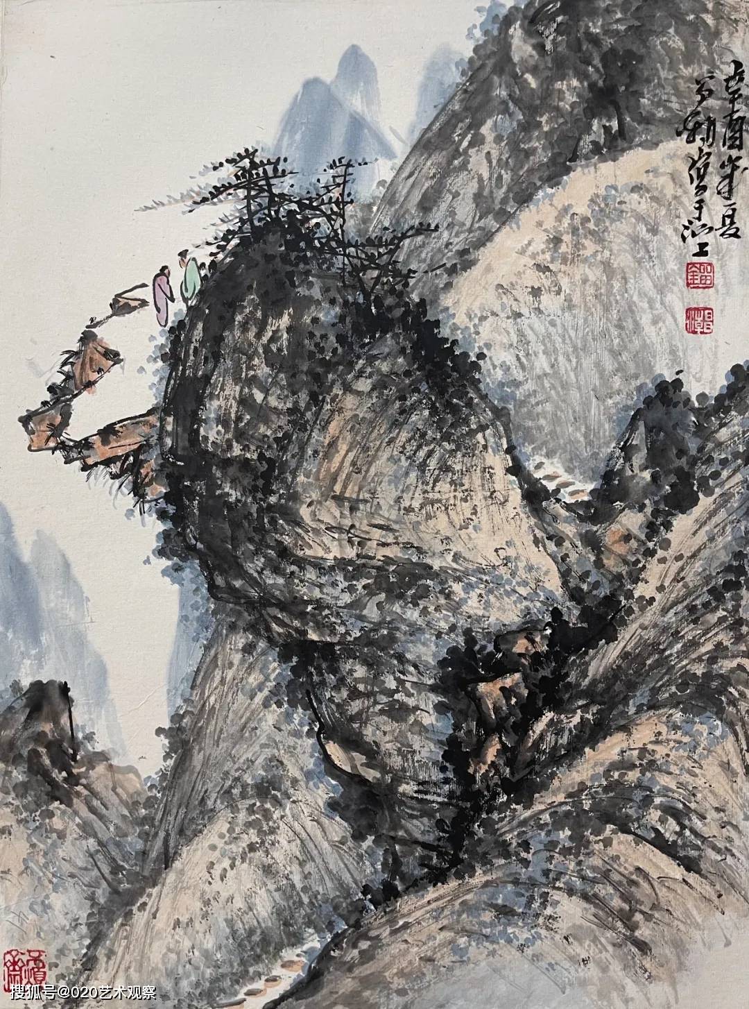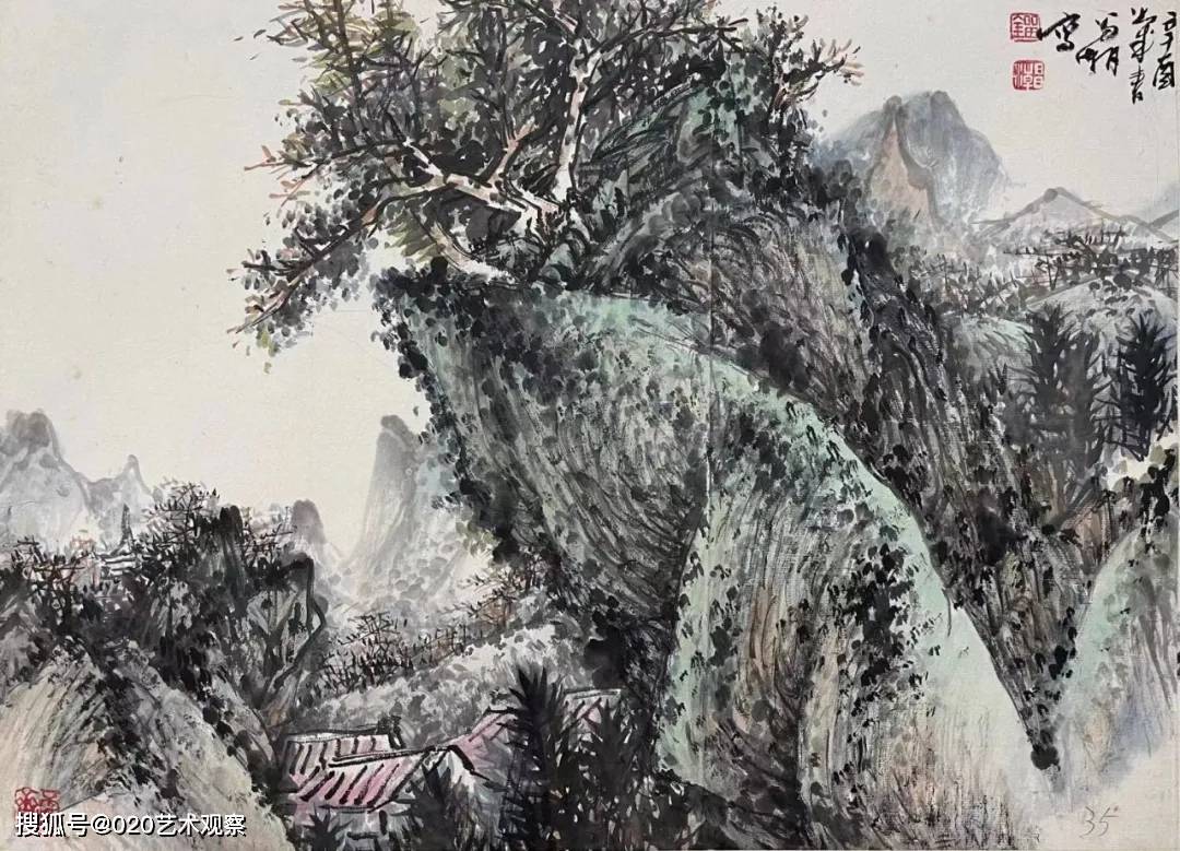 在刘昌潮的作品中,山川草木并非单纯的景物再现,而是心灵与天地的对话。他用笔沉雄稳健,墨色层次分明,皴擦点染间尽显山石的肌理与气韵;构图开合有度,或高远,或平远,总能引人入胜,让观者仿佛步入画中,听山泉叮婆娑。刘昌潮的艺术,不仅在于对笔墨传统更在于他对时代气息的敏锐捕捉。他在继承“四王”“石田”等先贤笔墨精髓的已添加到剪贴板现实山水的真切感受,使作品既具古典的雅韵,又不失鲜活的生命力。正如诸闻韵所评:“用笔遒劲,食古力深”,他的画既有深厚的传统功力,又有鲜明的个人风格。