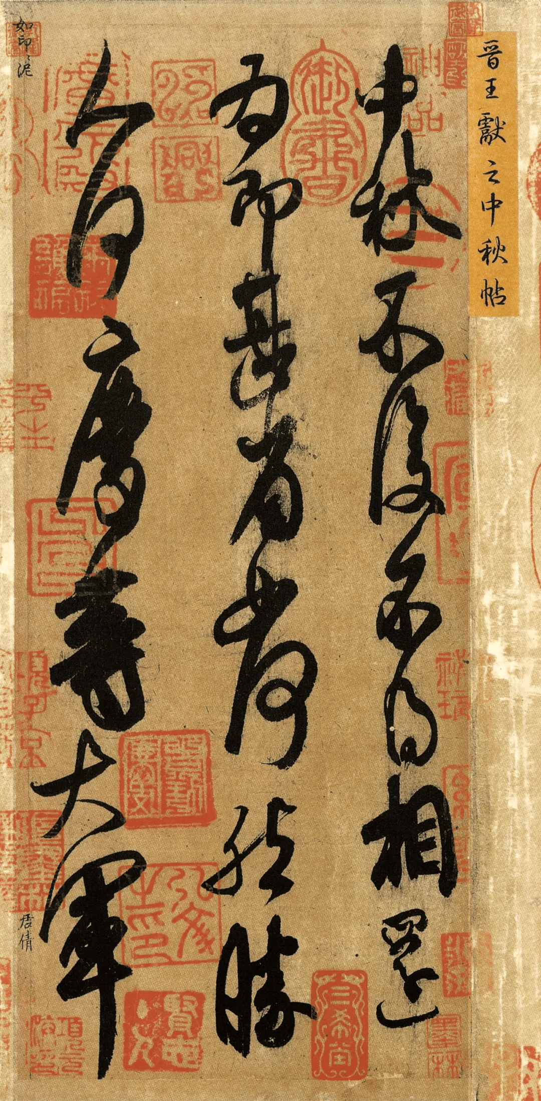 《中秋帖》被认为是晋代王献之“一笔书”的代表作,而且更是张芝的“章草”和其父王羲之的“今草”又向前推进一层,独树一派!这字后人怀疑是假的! 首先,这法帖用的是竹纸。晋朝没有竹纸啊啊!是北宋时方才出现啊!其次,行笔,书写时也用的是无心笔!并非晋朝惯常使用的有心硬笔啊!