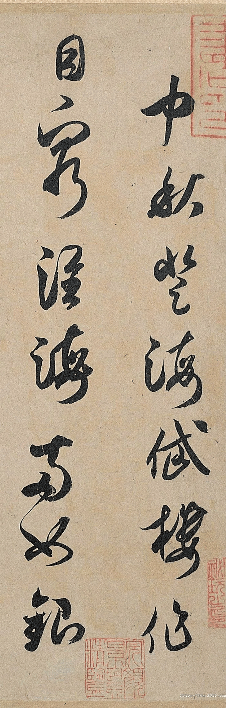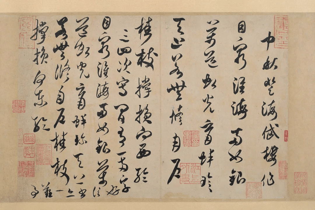米芾的一幅收藏于日本大阪市立美术馆的《中秋登海岱楼诗帖》,为宋代书法家、鉴藏家、收藏家米芾所作: