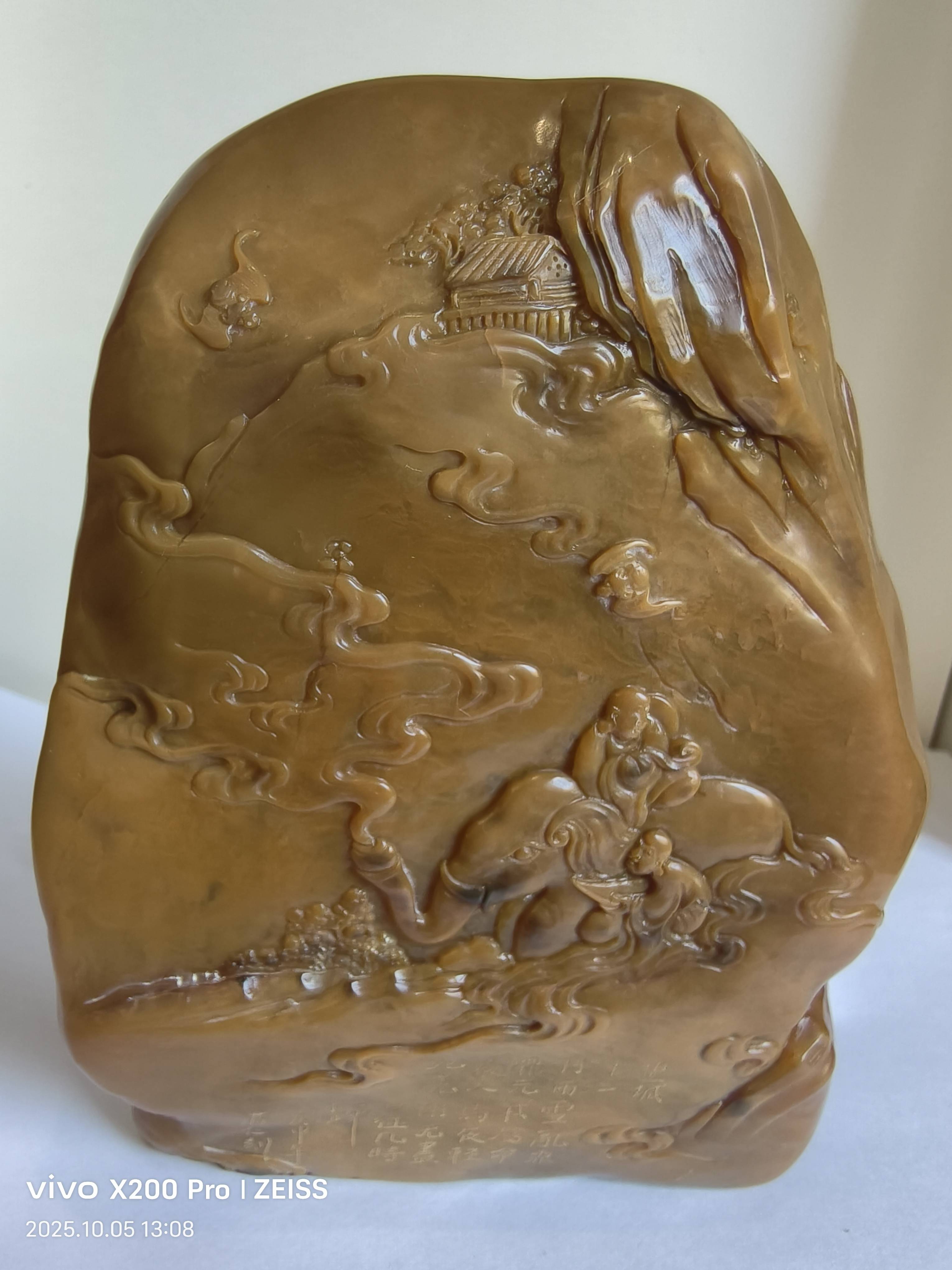 “边款之雅”是“墨韵”的延伸。边款是篆刻者刻在印章侧面或顶部的题跋,通常包括姓名、日期、创作心得等,而“墨韵金章田黄石”的边款,更是将“墨韵”从印面延伸到石材周身的关键。篆刻者以“单刀”或“双刀”技法,在田黄的侧面刻下行书或楷书的文字,线条或流畅或顿挫,完全模拟毛笔书写的笔触——横画的“蚕头燕尾”、竖画的“垂露悬针”、撇画的“轻盈飘逸”,都通过刀痕精准呈现,似一幅微缩的书法作品刻于石上。更精妙的是,边款的刀痕深浅不一,深者似墨色浓郁,浅者似墨色清淡,甚至部分刀痕的“崩裂”效果,似毛笔蘸墨不足时的“枯笔”,让边款的“墨韵”与印面的“墨韵”相互呼应,形成“印面是篆书,边款是行楷,石身是画卷”的立体艺术效果。