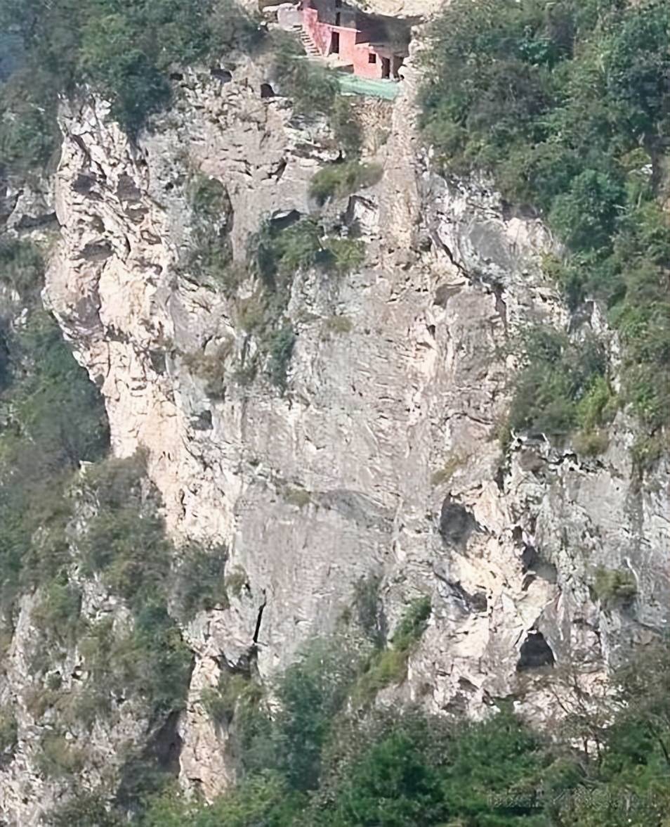 1990年代初,记者们在采访时注意到,从对面的“大锅大灶”山崖遥望,竟然看到谢天地岩上有两个小洞。奇怪的是,这些洞里居然有干草,且草堆得很整齐,看起来不像是风吹来的,也不像是鸟类所放。道士们解释说,这些洞可能曾是有人住过的地方,且上面的洞看起来是休息的地方,下方的洞则像是用来打坐的。