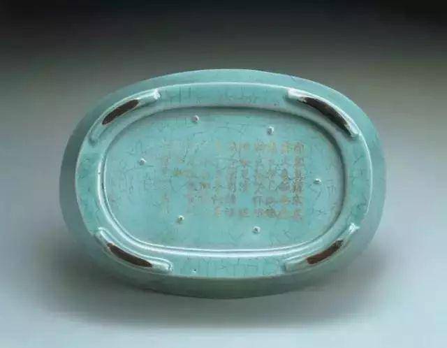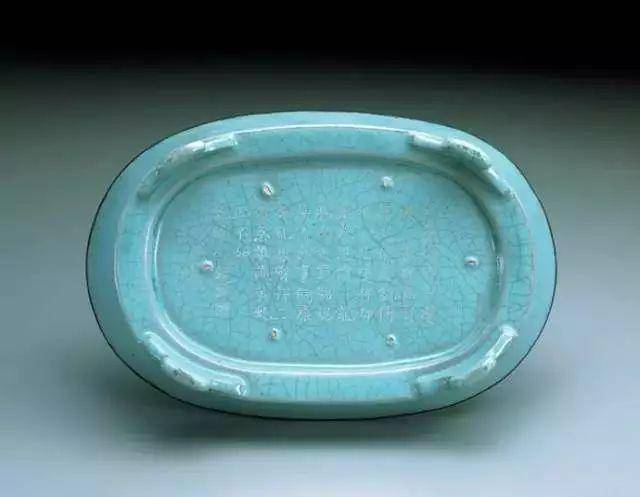 品名:北宋汝窑青瓷水仙盆尺寸:高5.6cm 深2.5cm 口纵15.2cm 口横23cm 底纵13cm 底横19.6cm典藏号:故瓷013977原收藏地:重华宫底部支钉:6枚传记:椭圆形盆、突出一圈侈口、深壁、平底、足底间突出一圈窄边稜、四足、足呈云头形。1936年曾参加伦敦中国艺术国际展览会,编号Porcelain No.25。全器满釉不露胎,仅在器底留下六个细小支钉痕。器底刻有乾隆御题一首。明代鉴赏家曹昭在《格古要论》中提到,汝窑瓷器「有蟹爪纹者真,无纹者尤好」。这件水仙盆釉色匀润,通体无文,是传世所见唯一一件没有开片的汝窑瓷器。御制诗:官窑莫辨宋还唐,火气都无有葆光,便是讹传猧食器,蹴秤却识豢恩偿,龙脑香薰蜀锦裾,华清无事饲康居,乱碁解释三郎急,谁识黄虬正不如。台北故宫馆藏21件汝窑完整介绍之十四汝窑青瓷圆洗▼