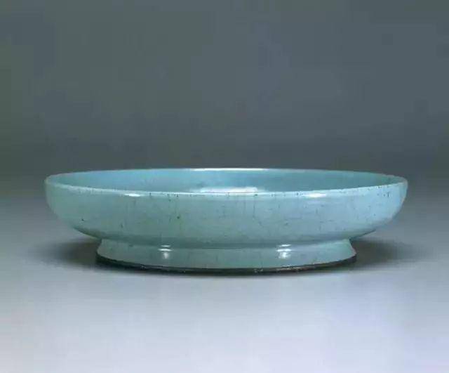 品名:北宋汝窑青瓷圆洗尺寸:高4.7cm 深4.2cm 口径15.7cm 足径13.1cm典藏号:故瓷005176原收藏地:南库底部支钉:5枚传记:直圆口、深壁、壁至底部呈现弧形内敛、平底无足。底部有五点细如芝麻的支烧痕,口沿则有镶铜脱落的痕迹,露出黄灰色的胎土颜色。台北故宫馆藏21件汝窑完整介绍之八汝窑青瓷“甲”字盘▼