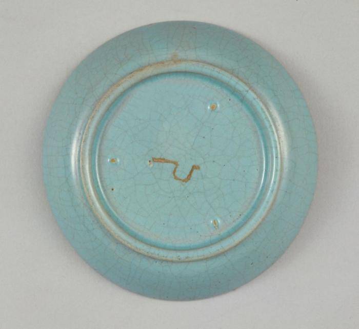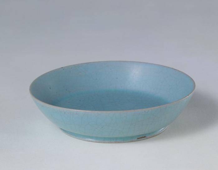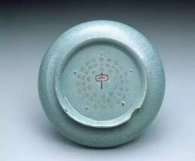 品名:北宋汝窑青瓷盘尺寸:高3.2cm-3.7cm 深2.3cm 口径14.5-14.9典藏号:故瓷018182原收藏地:永寿宫底部支钉:5枚传记:侈圆口、浅斜壁、平底、圈足微外撇。底部有五致钉痕,中心刻有“甲”字篆款。除本件外,台北故宫尚藏有一件汝窑青瓷盘和一件汝窑青瓷圆洗在器底也刻有“甲”字篆款。此二件同时刻有乾隆御制诗,根据诗文内容,有些研究者认为“甲”字是古时划分瓷器等第但刻款。台北故宫馆藏21件汝窑完整介绍之十三汝窑青瓷水仙盆