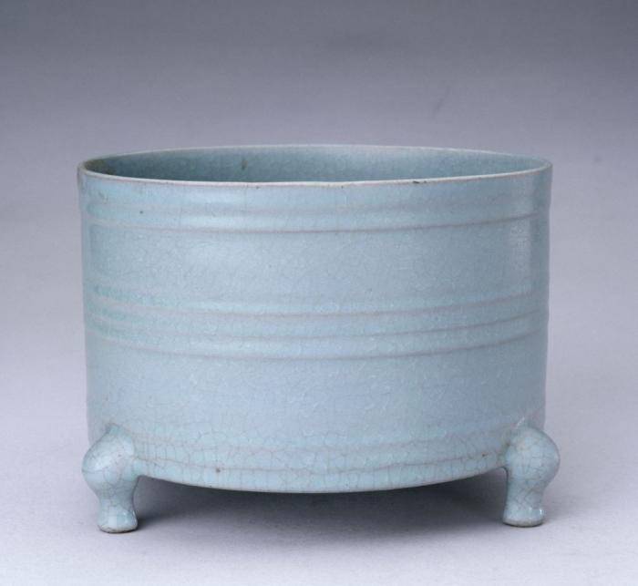 4、釉的色调——汝官的釉色大体上可分成月白、粉青、卵青、豆青、天青、灰青、虾青等七大类。这些不同色调的釉,它们的质感也各不相同。有人认为,色调和质感上的差异可能是不同的配方所造成的,但是化学分析的结果表明,各种汝官窑釉所用的配方是同一类型的配方,它们的化学组成,除了个别例外,没有明显差别。至于个别数据差别稍大,那是多种原因造成的,包括原料的不均匀性、样品本身存在的不均匀性以及测试方法的不同等等。