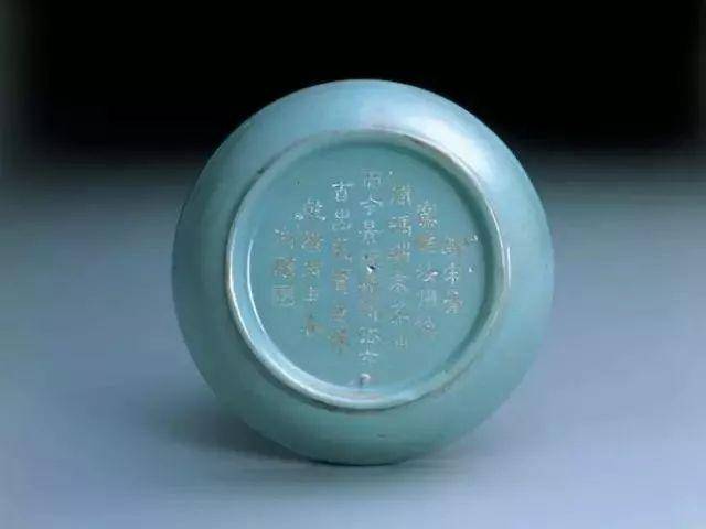 品名:北宋汝窑青瓷圆洗尺寸:高3.5cm 深2.5cm 口径12.9cm 足径9cm典藏号:故瓷009827原收藏地:宁寿花园、萃赏楼、抑斋、遂初堂、三友轩、延趣楼其中一处底部支钉:3枚传记:敛圆口、浅壁、平底、圈足外卷。器底有三个细小支钉痕,并刻有乾隆丙申(1776)春御题一首。诗文内容与现藏于伦敦大学大卫德基金会的另一件汝窑盘相同。这件藏于大卫德基金会的汝窑青瓷盘尺寸稍大,底有五支钉痕,并刻有乾隆已亥(1779)夏御题。二者诗文内容完全一致,但台北故宫汝窑青瓷圆洗除了御制诗外,还钤有一「朗润」印,二者在诗文布局上略有不同。御制诗:祗赵宋青窑建汝州,传闻玛瑙末为釉,而今景德无斯法,亦自出蓝宝色浮。台北故宫馆藏21件汝窑完整介绍之十六汝窑青瓷水仙盆▼