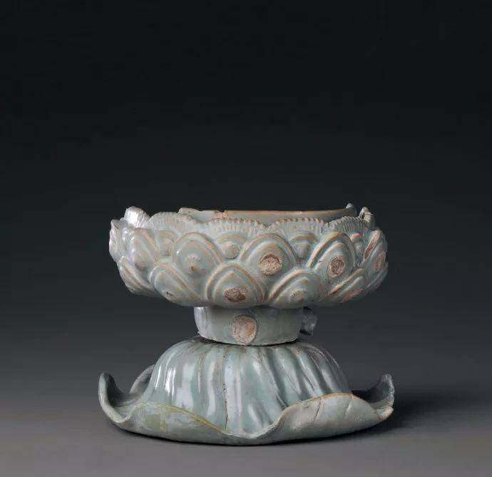 品名:北宋汝窑青瓷奉华纸槌瓶尺寸:高22.4cm 深21.9cm 口径4.4cm 足径8.6cm典藏号:故瓷017856原收藏地:南库底部支钉:5枚传记:圆口、口沿镶铜釦,长颈、折肩、直腹、平底,底部有五点支钉痕,刻有乾隆戊戌年(1778)御题,诗文左侧刻有“奉华”二字。奉华全称奉化堂,是南宋宫室中德寿宫的配殿,也是高宗宠妃刘贵妃的居所,有论者据此推论此件器物即为当时宫廷用器。但此件纸槌瓶但“奉华”款僻据器底一侧,适合刻有避开乾隆御题,所以也有学者认为此件“奉华”款应为后刻。此件作品在1946年参加伦敦中国艺术国际博览会。御制诗:“定州白恶有芒形,特命汝州陶嫩青,口欲其坚铜以锁,底完而旧铁余钉,合因点笔意为静,便不簪花鼻亦馨,当日奉华陪德寿,可曾五国憶留停。”台北故宫馆藏21件汝窑完整介绍之三汝窑青瓷莲花式温碗▼