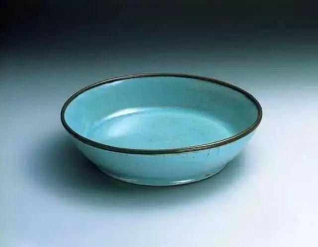品名:北宋汝窑青瓷奉华碟尺寸:高1.9-2.1cm 深1.6cm 口径12.8cm 足径10.1cm典藏号:故瓷018048原收藏地:养心殿底部支钉:3枚传记:浅圆碟,口沿镶铜扣,底有三点细如芝麻的支烧痕,并有「奉华」二字刻于盘底中心。奉华二字刻痕细,内填硃红,由其痕迹观察应为支烧之后所刻。这件汝窑磁碟是现存三件刻有奉华款的汝窑瓷器中,唯一的一件盘碟类器皿。对照雍正七年(1729)活计档匣作一条,很可能即是汝窑清单中所指的奉华字圆笔洗。
