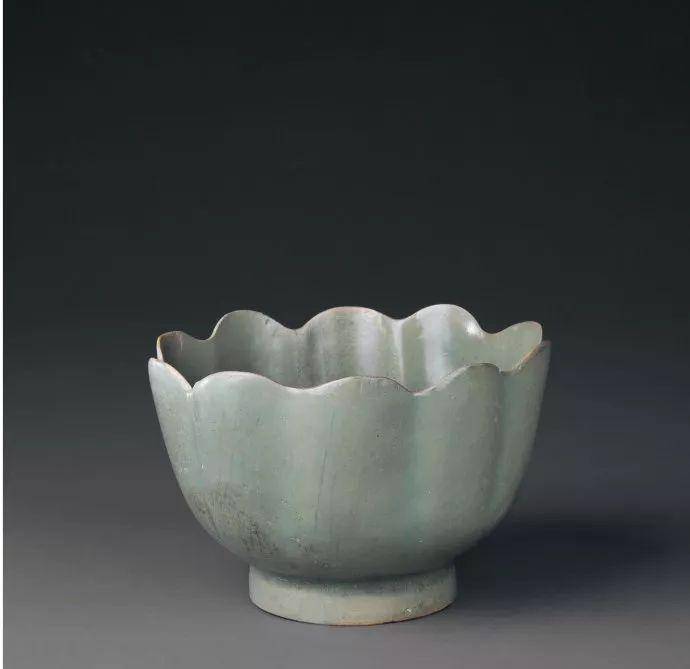 品名:北宋汝窑青瓷莲花式温碗尺寸:高10.1cm-10.5cm 深7.6cm 口径15.9-16.2cm 足径8.1cm典藏号:故瓷016929原收藏地:养心殿底部支钉:5枚传记:十瓣莲花口碗、壁弧且深、上侈下敛、平底、圈足高且足径略大。器底有五细小支钉痕。温碗是盛行于晚唐至宋代的温酒器具,一般来说都和执壶配成一套。这件藏于台北故宫的汝窑青瓷花式温碗,是目前汝窑存世作品中此类器形唯一的一件。台北故宫馆藏21件汝窑完整介绍之四汝窑青瓷水仙盆▼