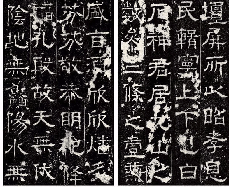这两个字近篆而非,属隶又违,行笔纵放不羁,确有波涛澎湃之势。从书法艺术上来评判,“衮”字一撇一捺挑起浪花,颇有动态之感;“雪”字安逸静谧,则有静态质感,形神兼具,寄寓了书家拨乱反正的雄心与豪情。其书法除展示出与《曹全碑》同时代字迹娟秀清丽的特征外,更显出少有的一种雄浑遒劲、动静有致的浩然英雄之气!