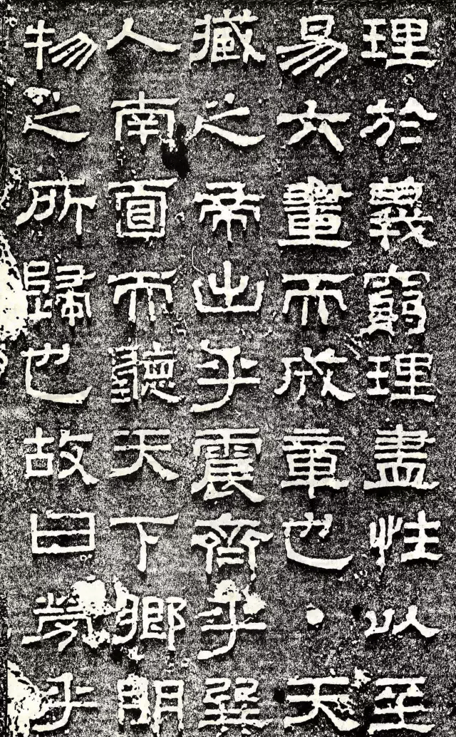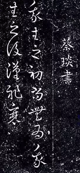 灵帝命工修理鸿都门(东汉时称皇家藏书之所为鸿都),工匠用扫白粉的帚在墙上写字,蔡邕从中受到启发而创造了“飞白书”。这种书体,笔画中丝丝露白,似用枯笔写成,为一种独特的书体,对后世影响甚大。唐张怀瓘《书断》评蔡邕飞白书“妙有绝伦,动合神功”。