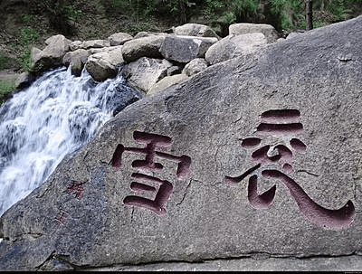 相传,汉建安24年(公元219年),曹操驻兵汉中褒谷口运筹国事,见褒河流水汹涌而下,撞石飞花,挥笔题写“衮雪”二字,随从提醒:“衮字缺水三点”。曹操抚掌大笑:“一河流水,岂缺水乎!”遂成千古美谈。后刻于河中巨石上流传至今。
