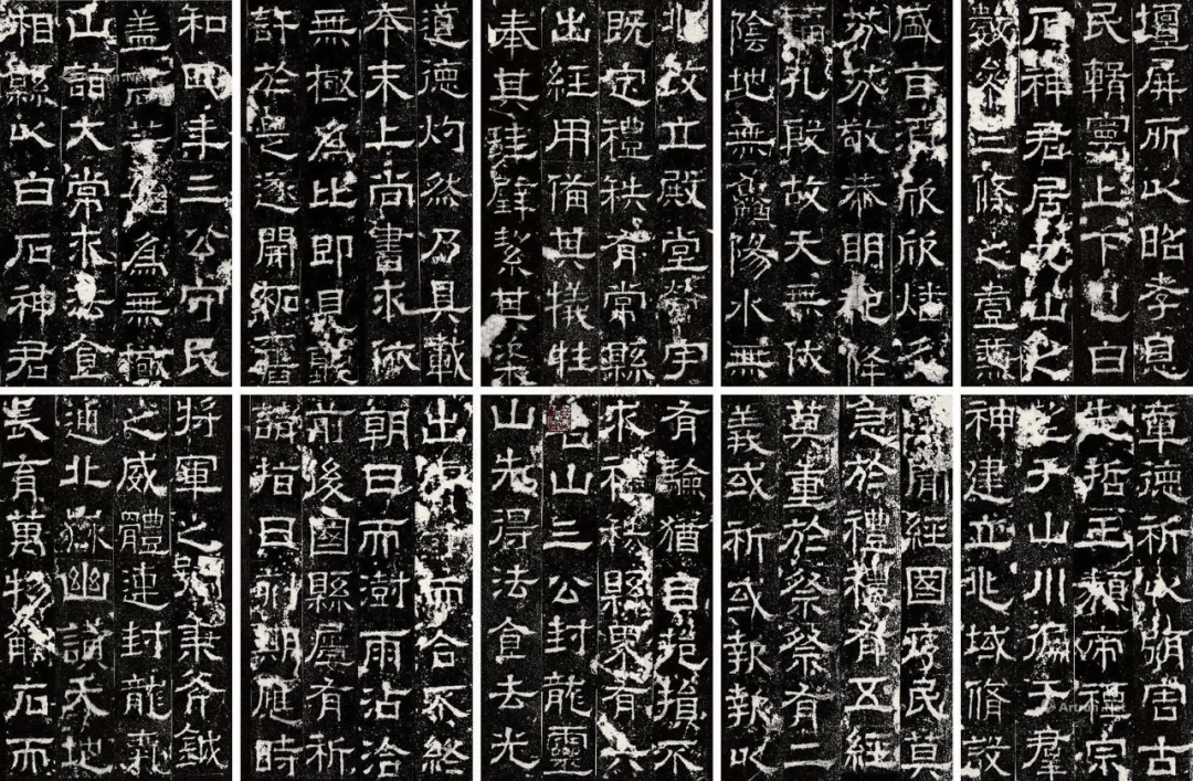 灵帝予以批准,蔡邕即用红笔亲自写在碑上,让工人刻好立在太学的门外,这就是中国第一部石经——“熹平石经”(又称汉石经、一体石经)。后来的儒者学生,都以此为标准经文。