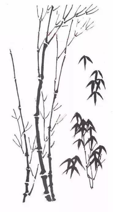 的特点是竹竿坚硬而且有弹性,竹叶有个字形、介字形等等。在作画时,竹竿应有长短、粗细之分,新枝形状有鹿角、鹊爪、鱼骨之分,竹叶应随着新枝长出,应有转、侧、低、昂和前后层次,行笔时手腕应有力。切忌画乱和死板。↓↓↓