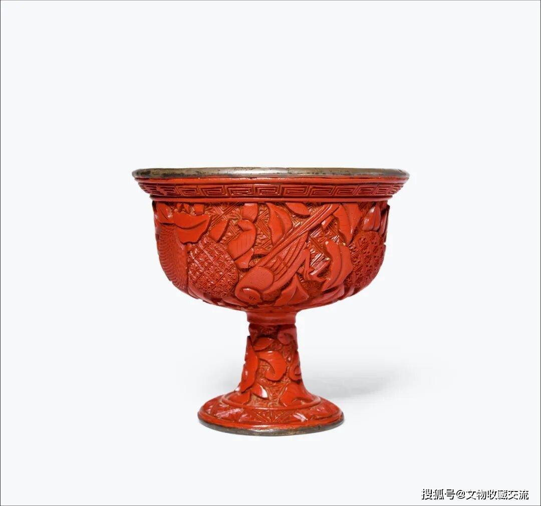 剔红荔枝花鸟纹高足杯