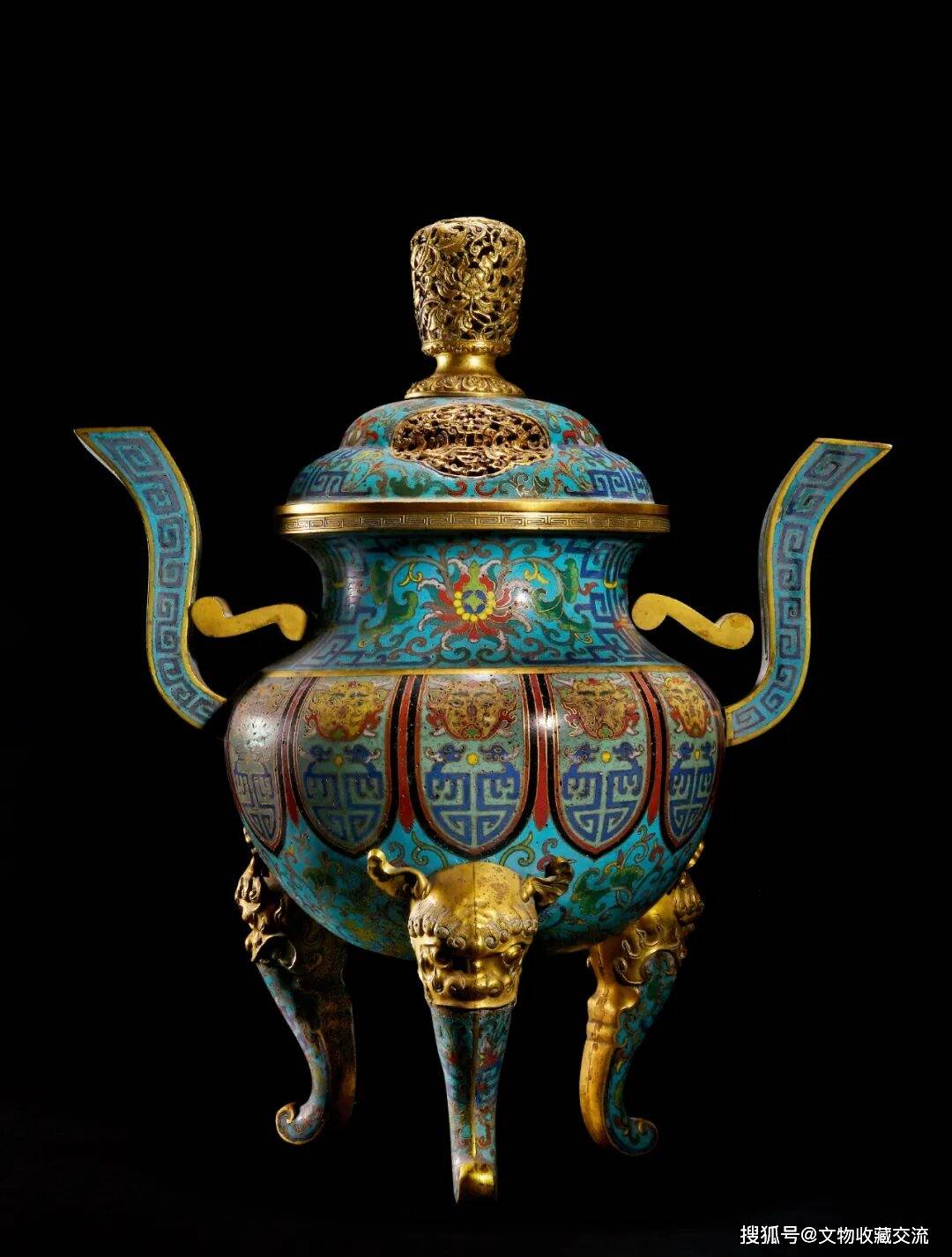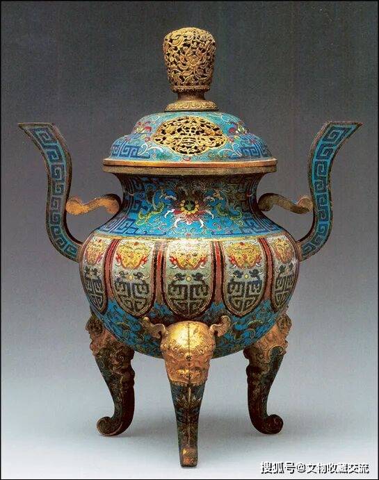 掐丝珐琅缠枝莲蝉纹兽足朝冠耳熏炉