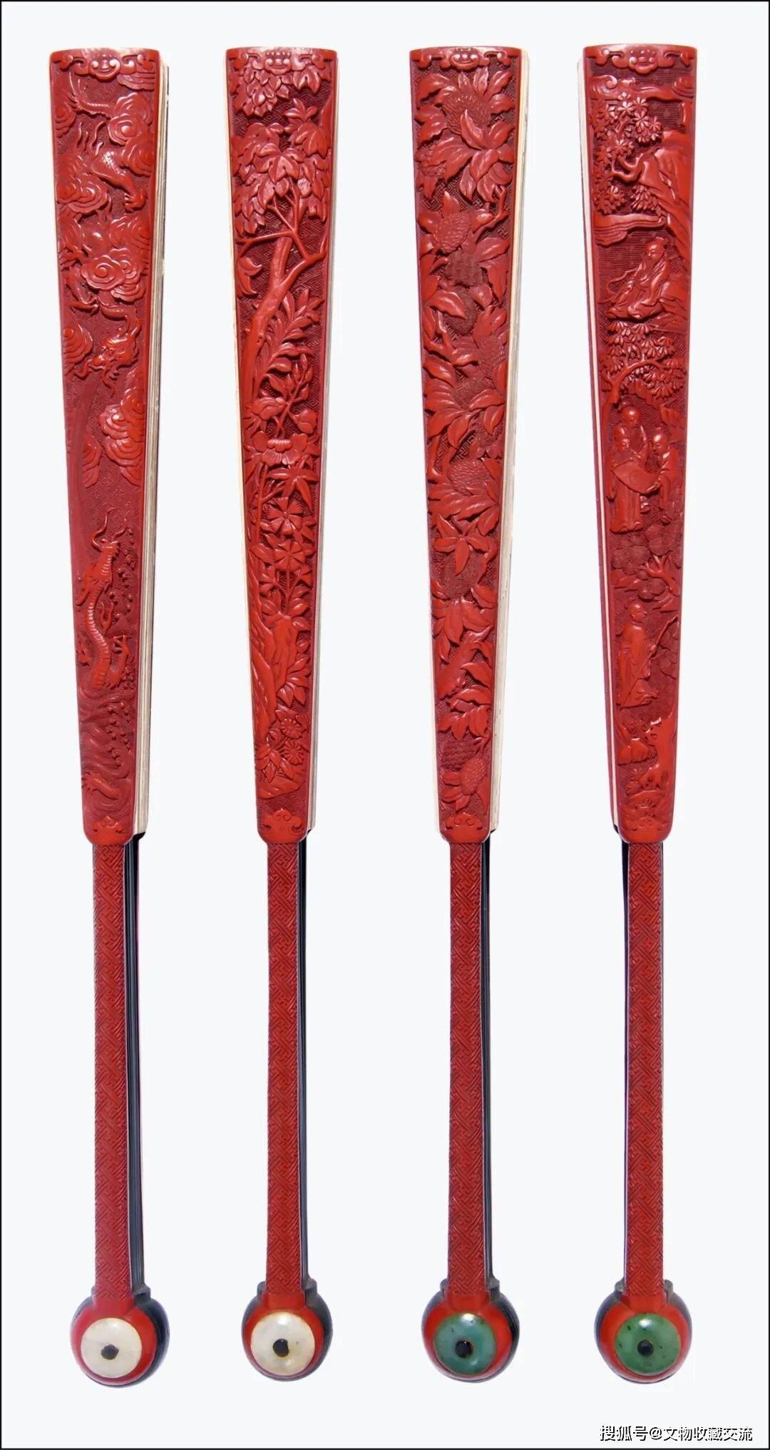 剔红会昌九老图、云龙纹、九秋图、荔枝纹扇骨一套四把