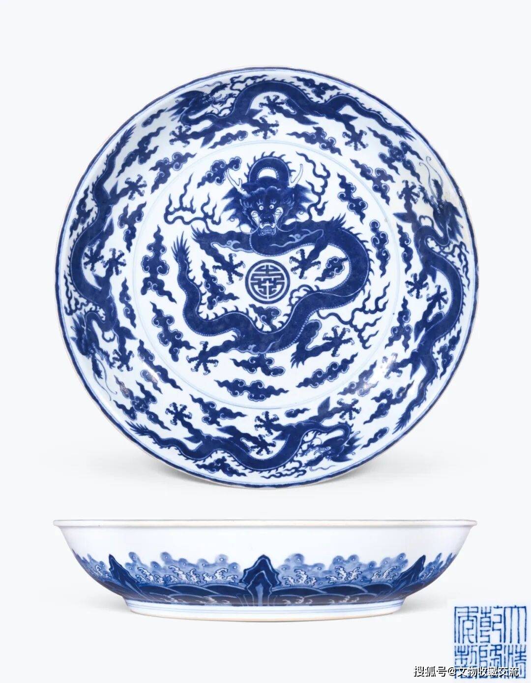 青花云龙捧寿图大盘