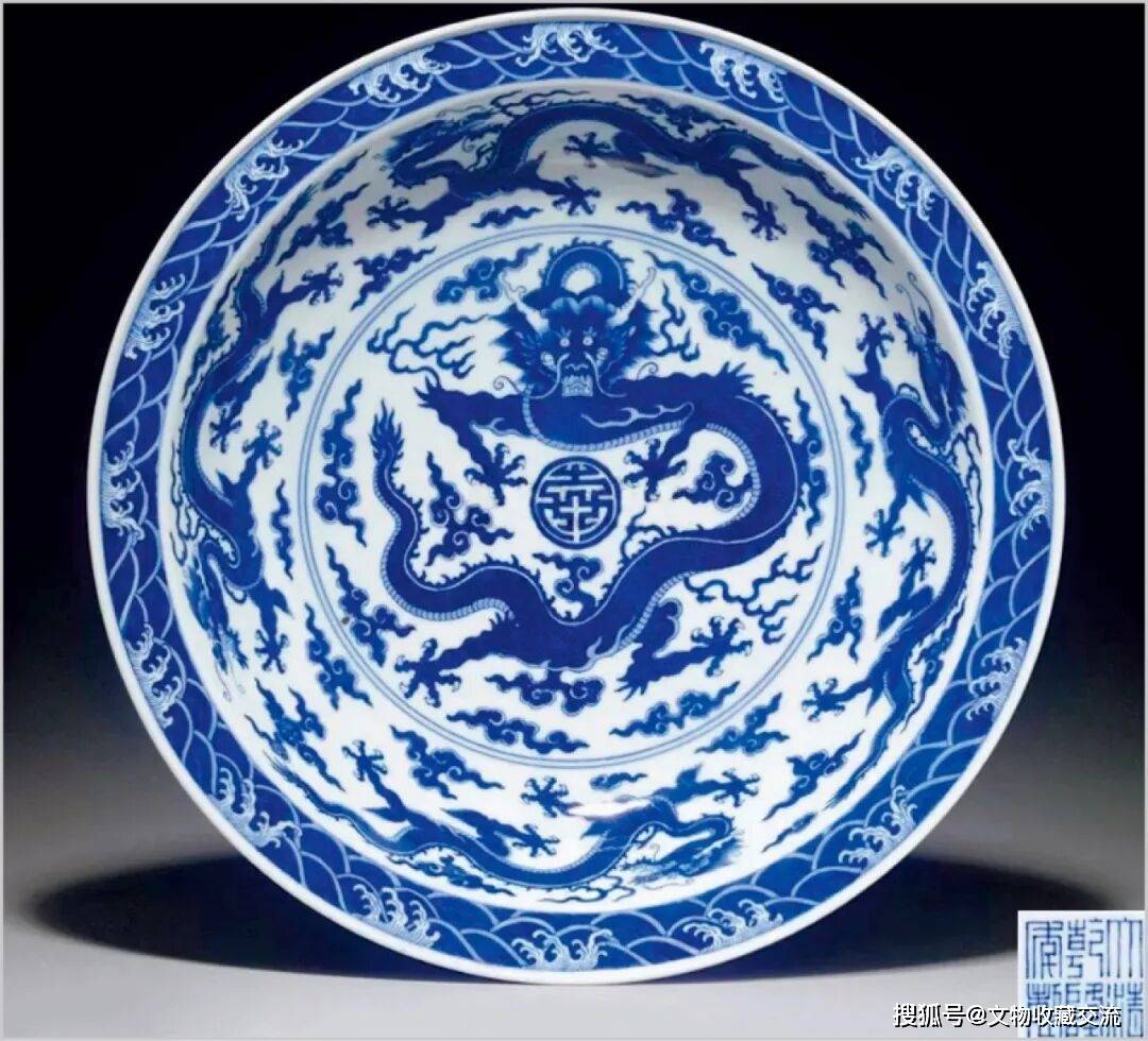 此外,对比雍乾两朝所制,初视几近无二,然细观之,便得个中迥异。较之雍正纹样,乾隆器上绘饰更显规整谨慎,所绘舒卷瑞云、波涛涌浪更显整齐统一。两朝大盘之别,可见二人品昧之异。检索公私收藏可见,纽约于2011年曾释出一件同期作品,成交价高达131.45 万美元,足见市场对于此类作品的青睐和喜爱。