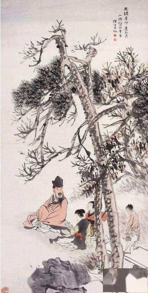 任伯年善于运用非对称构图,在“险”中求“稳”。他常将主体物象置于画面一角或边缘,如《松鹰图》中,鹰立于右上角松枝,身体前倾,目光锐利,形成强烈的视觉动势;左下方则以大片留白或淡墨渲染山石,形成“虚”与“实”、“动”与“静”的对比。这种“险构”虽打破常规,但通过物象的呼应、线条的牵引与视觉重心的巧妙安排,最终实现整体的动态平衡,使画面在紧张中蕴含稳定,在动荡中不失和谐。
