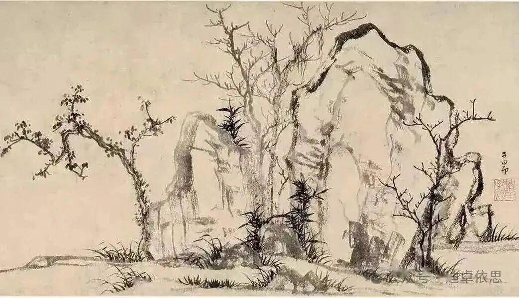 更为确凿的证据来自其山水画中的花鸟元素。如《剡溪访戴图》中寒江两岸的枯树寒鸦,《天池石壁图》中点缀的山禽野鸟,虽为点景之笔,然造型准确,笔触生动,显示出其对自然物象的细致观察与表现能力。