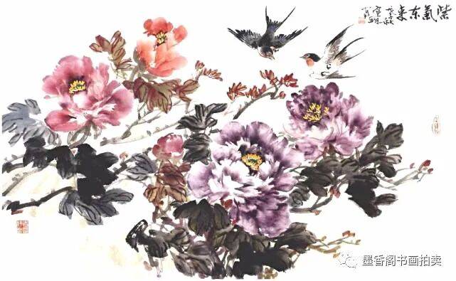 紫气,表示祥瑞之气。燕子为吉祥之鸟,恋旧重故友之情谊。“似曾相识燕归来”,故人们以燕子寓情意。燕子与鸳鸯一样喜欢双飞双栖,常以“燕侣”形容夫妻恩爱和谐。