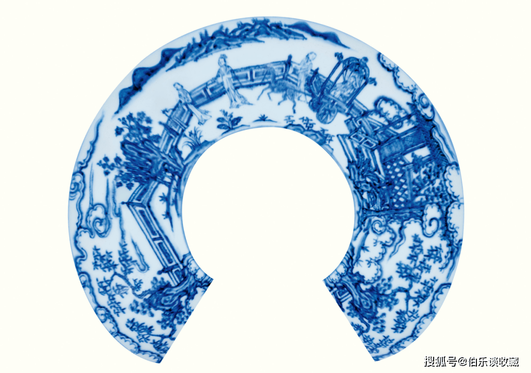 这类画人物故事的宣德青花瓷器,带着山水庭园的背景,布局疏朗,画意又清雅,一点不杂乱。在宣德御窑青花里,算是算特别招人喜欢和很具吸引力的一类。