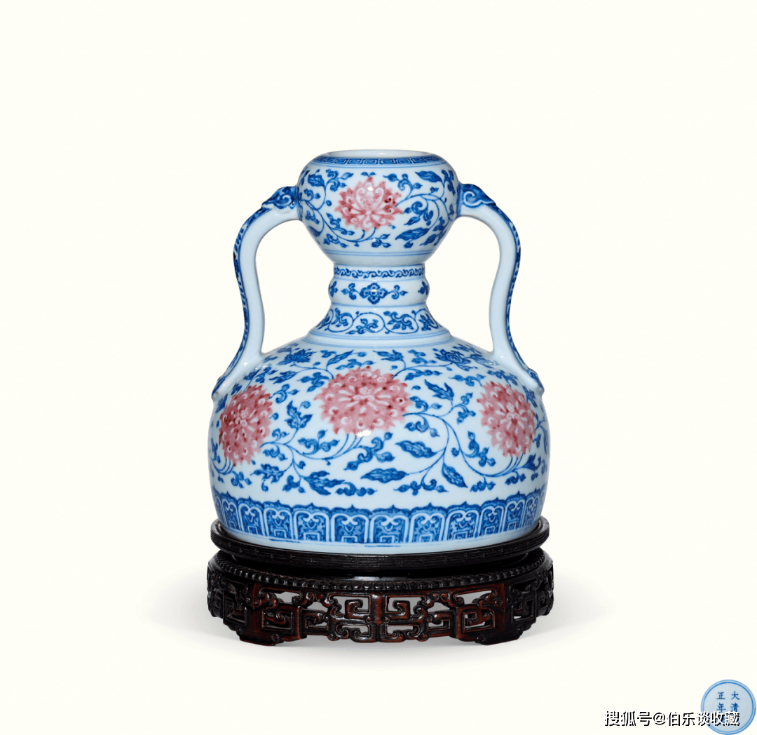 还有件清雍正青花釉里红缠枝莲纹如意耳尊,高18.5厘米,拍了736万。这个更考验工艺,青花用钴料,釉里红用铜料,两种原料对窑温要求完全不一样,雍正朝能把两者烧得都鲜亮,青红分明,技术也是顶流的。