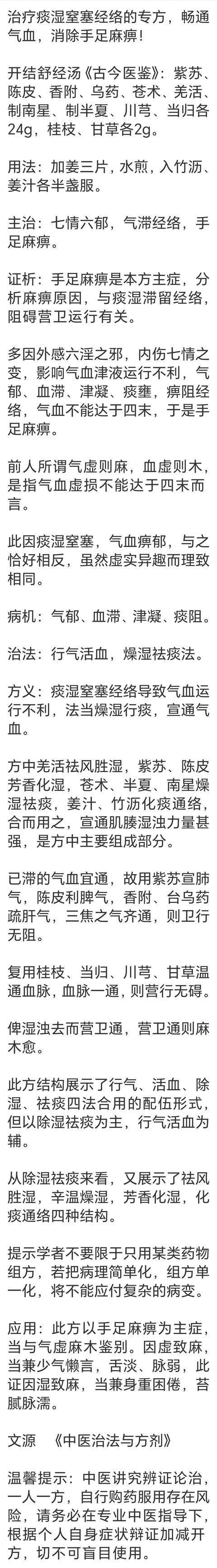 治疗痰湿窒塞经络的专方,畅通气血,消除手足麻痹!